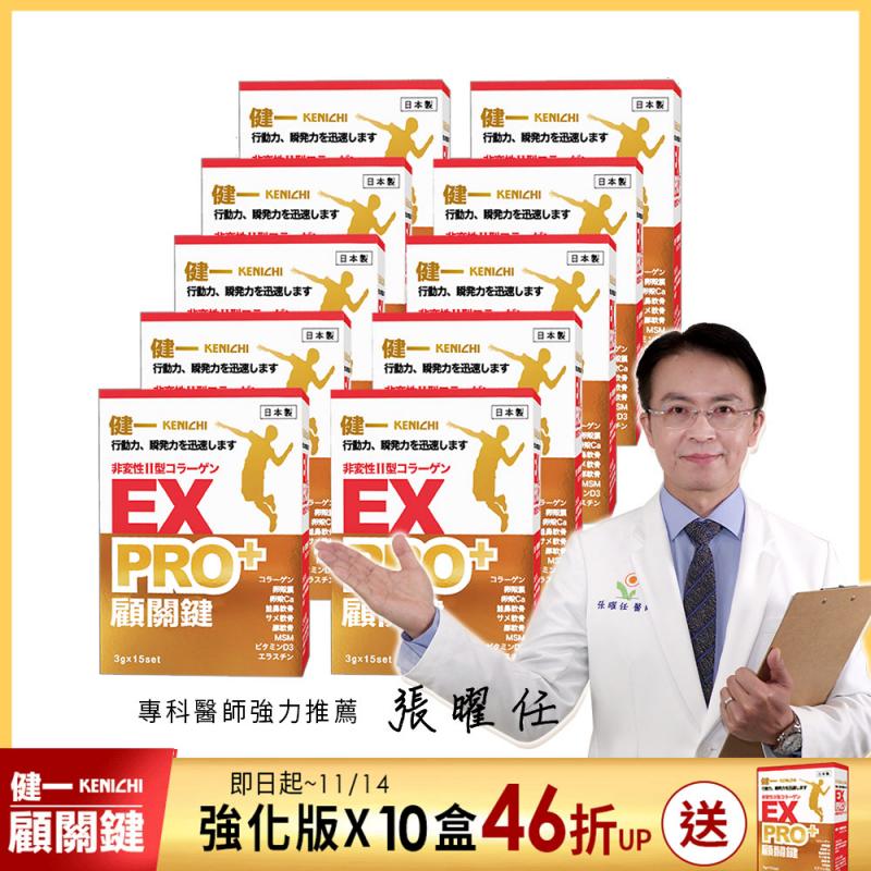 【健一】顧關鍵 日本原裝 非變性二型膠原蛋白+卵殼膜胜肽+維生素D3_PRO強化版x10盒 銀髮/行動保健(15包/盒)+贈 PRO強化版1盒