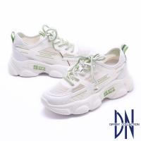DN老爹鞋_真皮拼接網布雙色鞋帶造型厚底休閒鞋-白綠色
