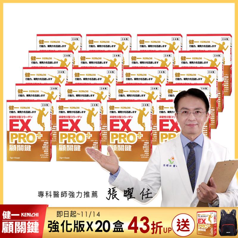 【健一】顧關鍵 日本原裝 非變性二型膠原蛋白+卵殼膜胜肽+維生素D3_PRO強化版x20盒 銀髮/行動保健(15包/盒)+贈 強化版1盒+防潑水背包