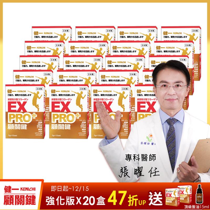 【健一】顧關鍵 日本原裝 非變性二型膠原蛋白+卵殼膜胜肽+維生素D3_PRO強化版x20盒 銀髮/行動保健(15包/盒)+贈 強化版2盒+摩洛哥 髮油x1