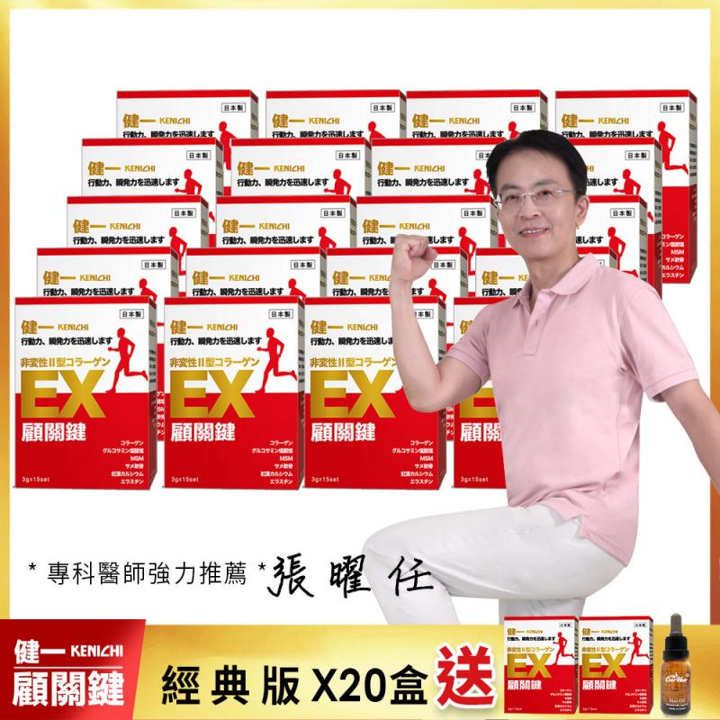 【健一】顧關鍵 日本原裝 非變性二型膠原蛋白+葡萄糖胺_關鍵王 經典版x20盒 15包/盒(靈活/行動保健)+贈 經典2盒+摩洛哥 髮油15mlx1